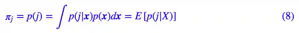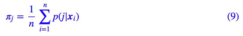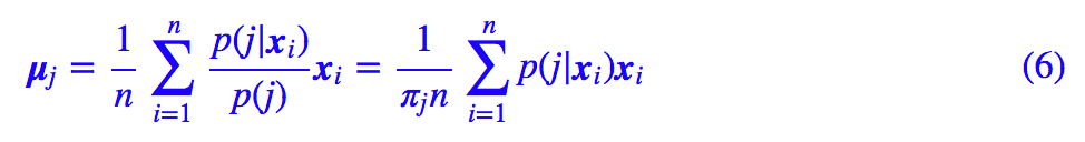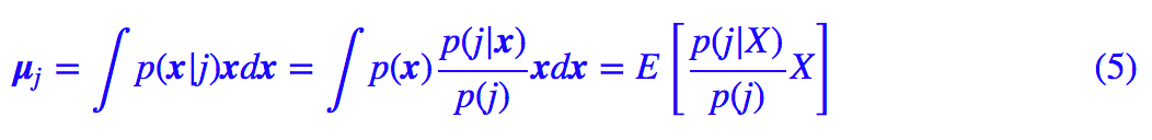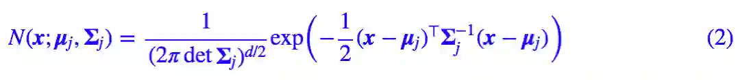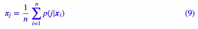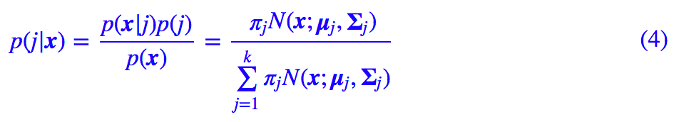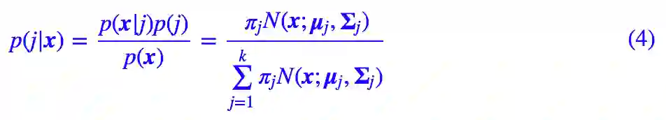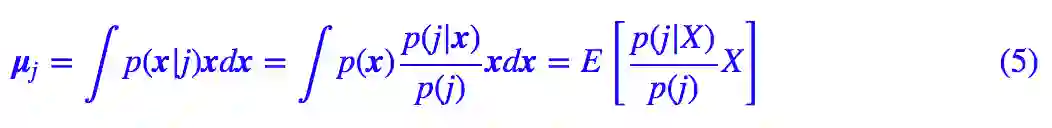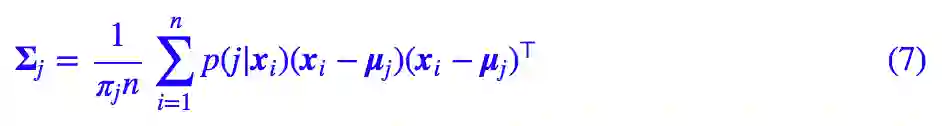 其中 p(j|x) 的表达式在 (4) 已经给出。类似地,对于协方差矩阵,我们有: