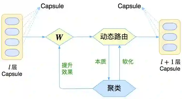 上图表明,Capsule 事实上描述了一个建模的框架,这个框架中的东西很多都是可以自定义的,最明显的是聚类算法,可以说“有多少种聚类算法就有多少种动态路由”。
