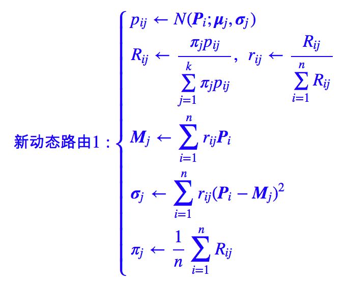 言归正传,还是说回 Capsule。我们说《Matrix Capsules with EM Routing》中用 GMM 算法完成了聚类过程,现在就来详细看看是怎么做的。