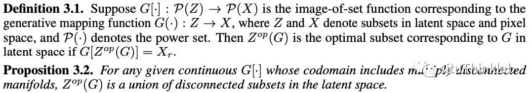 的定义,并说明拟合真实数据流形需要一个不连通的隐空间支撑。