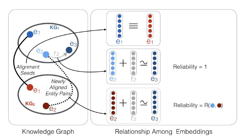 (1) 受到基于翻译的KRL方法启发,将对齐视为实体之间的一种特殊关系,在需要对齐的实体之间执行特定的翻译模型来学习联合表示。