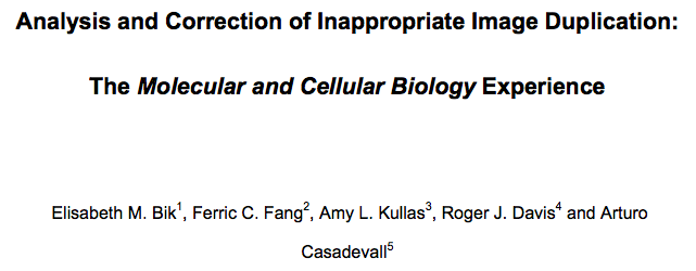 今年6月,斯坦福大学微生物学家分析了2009-2016年发表在分子与细胞生物学(MCB)上的960篇论文,发现其中59篇(6.1%)含有“不适当的”重复图像,约有2%值得再去进行图像证伪。