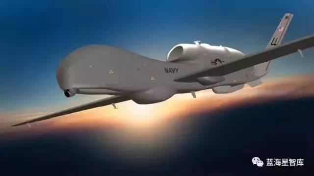 MQ-4C无人机由陆基基地起飞,作战半径3700千米,单架次飞行可侦察近700万平方千米的海域,可携带多种先进载荷,单独或与飞机、舰船等协同执行广域海上监视、通信中继等任务,是美海军未来重要的海上作战力量。