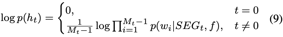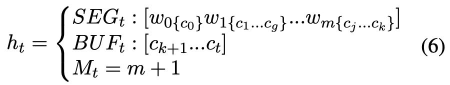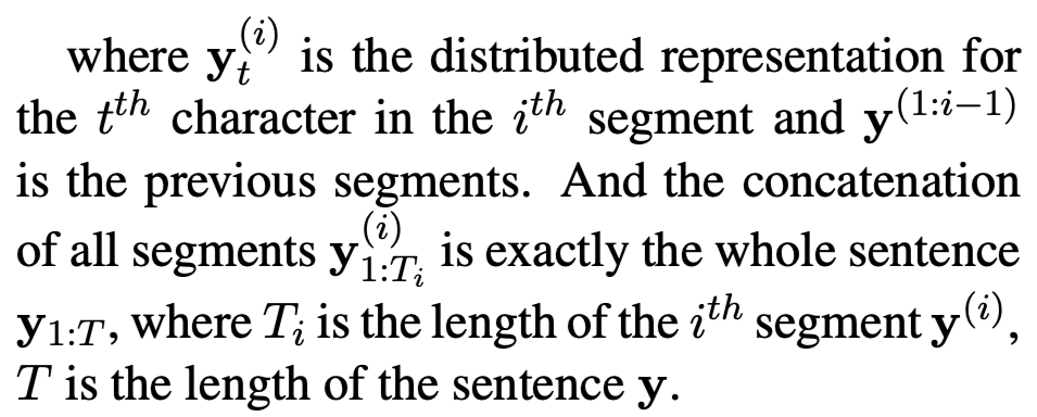 本文受到 RNN 的启发,本时刻的状态受到上一状态的影响。与神经语言模型相似,SLMs 建模的目标是学习分割后的字符序列的联合概率函数。