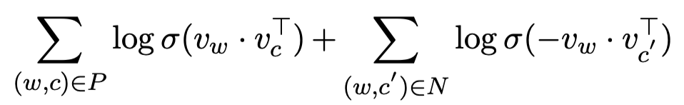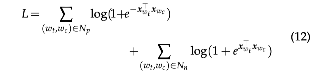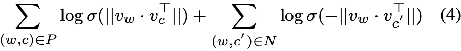规范化嵌入的点积;在原始的 skip-gram 模型中,直接使用两个单词的嵌入量的点积作为 sigmoid 层的输入。为了使基于 CWS 的单词嵌入模型导出的单词嵌入更符合上述用于分割的 metric,作者将原目标函数的训练目标修改为基于 dot-product 的目标函数: