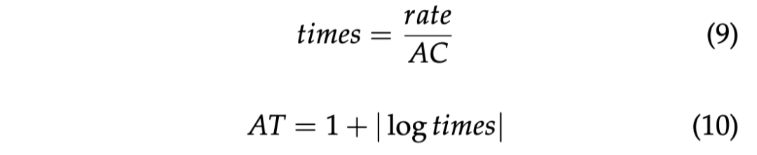 设 AC 为频率较低的集合 {am,∗} 或 {∗ ,bm} 的大小的倒数。则 times 和 AT 被表述为:
