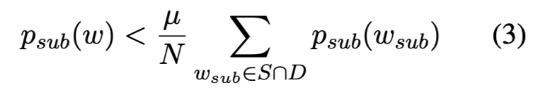 在中文中,有一些常见的由子串组成的多字词,这些子串本身也是非常常见的词。比如“但是”这个词能被分为“但”和“是”,而在 skip-gram 中频繁词的 embedidng 相对接近,因为频繁词与其他词共现的频率较高。在上一个方法中模型也倾向于不把“但是”切开,所以作者提出了一种 subsampling 的方法: