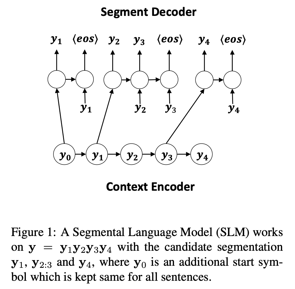 本文提出了一种基于神经网络的生成式模型:Segmental Language Models (SLMs),SLMs 可以直接生成分词后的句子,并给出相应的生成句子的概率。