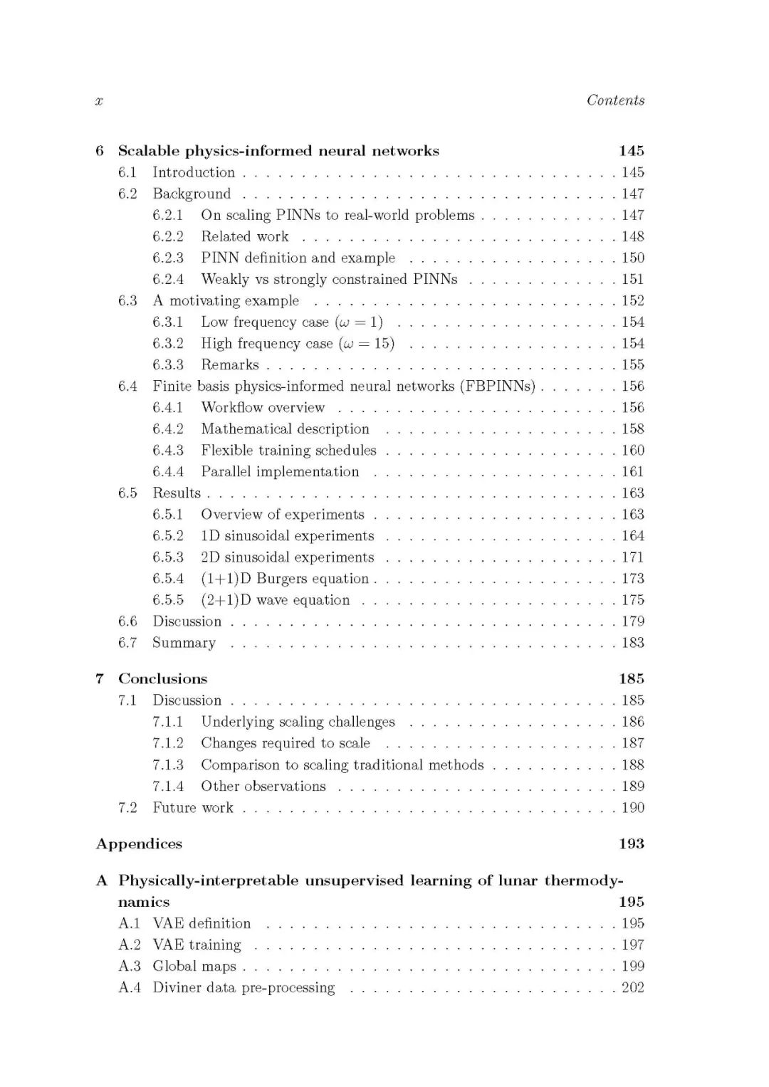 在本文中,我们主要采用两种方法来研究上述子问题。首先,针对前3个子问题,使用复杂的、真实的、特定领域的案例研究来考察多种不同的PIML方法的性能和可扩展性。对于每个子问题,我们提出了一个案例研究,提出了一种PIML技术(或各种PIML技术)来解决它,并评估该技术如何扩展到这种设置。其次,针对最后一个子问题,我们专注于单一的通用PIML技术,并评估和改进其可扩展性。前三个子问题分别在本论文的单独一章(分别为第3 ~ 5章)中进行研究,其案例研究均来自月球科学和地球物理学领域。最后一个子问题将在第6章进行研究。最后,我们在第七章中讨论和总结了每一章对我们主要研究问题的影响。