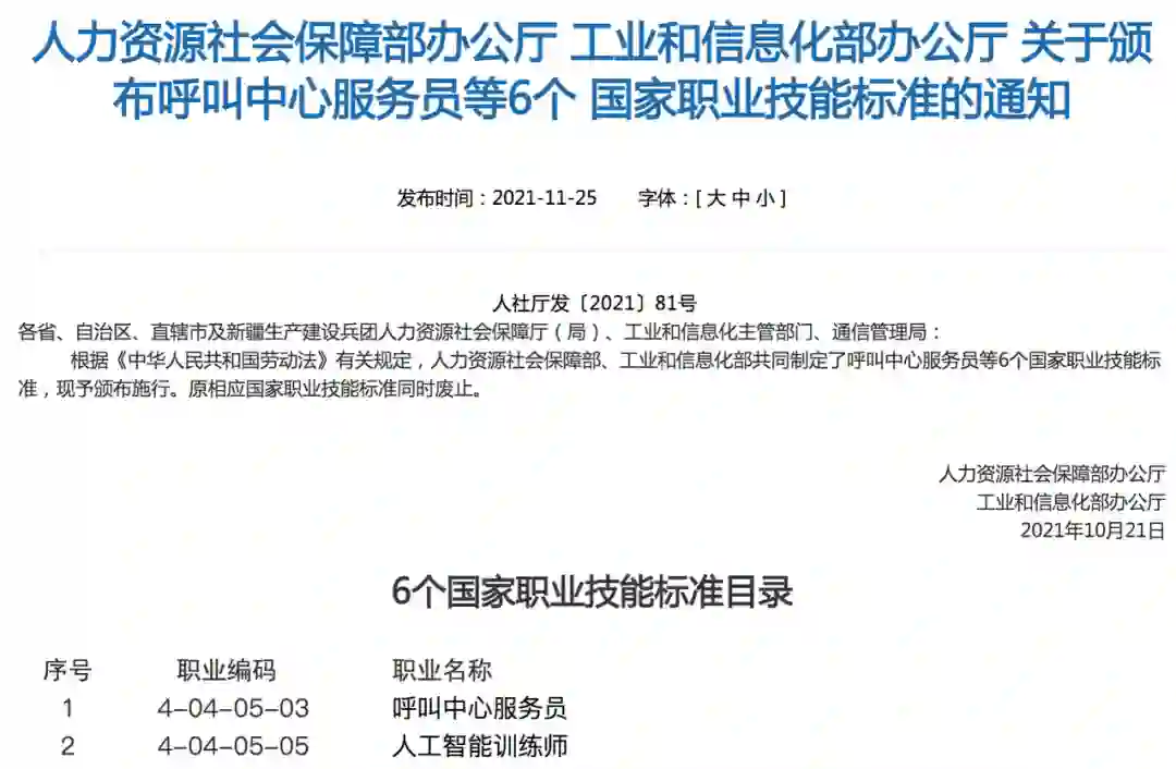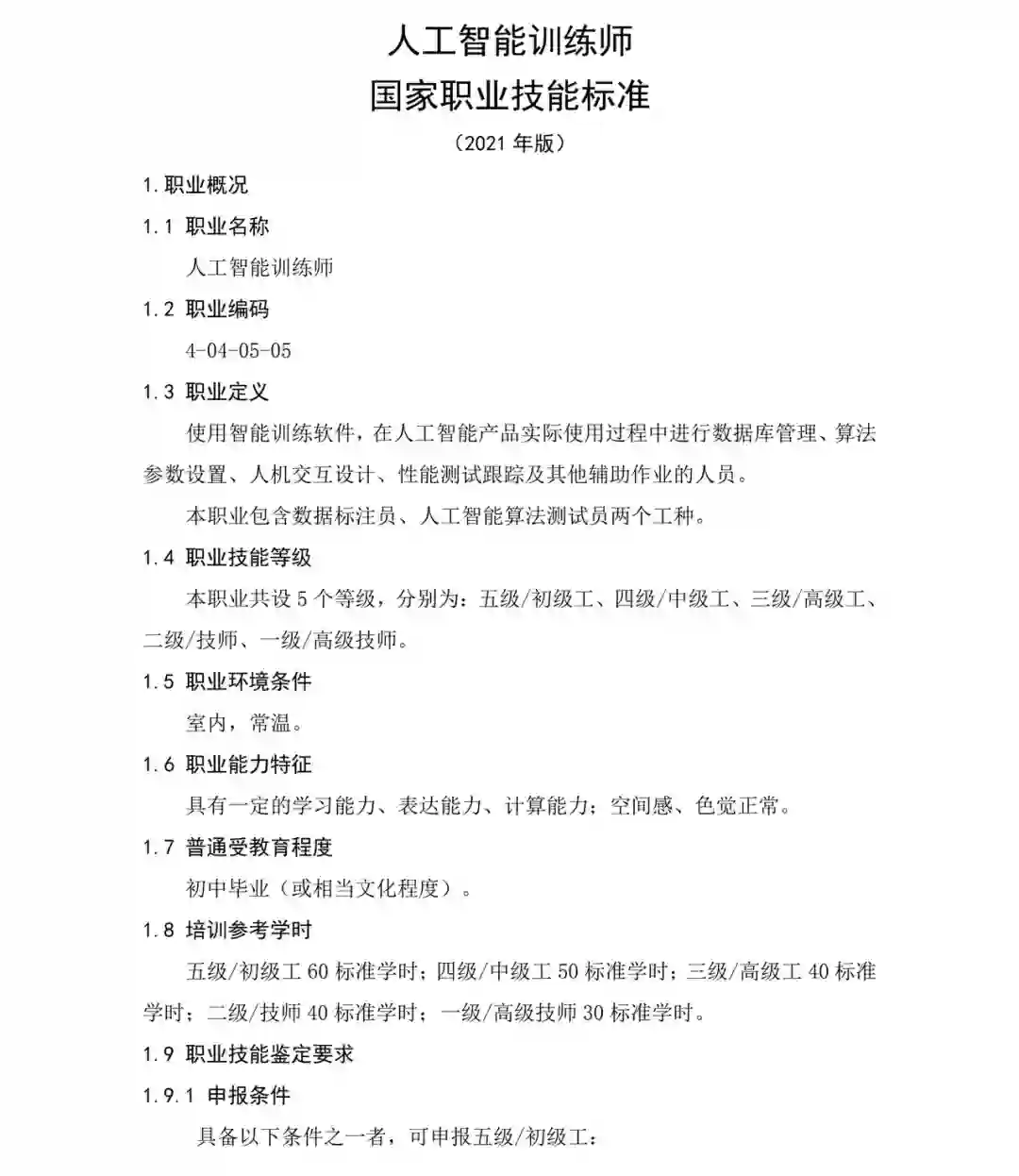 近日,国家人力资源社会保障部(以下简称人社部)发布了《人工智能训练师》国家职业技能标准。