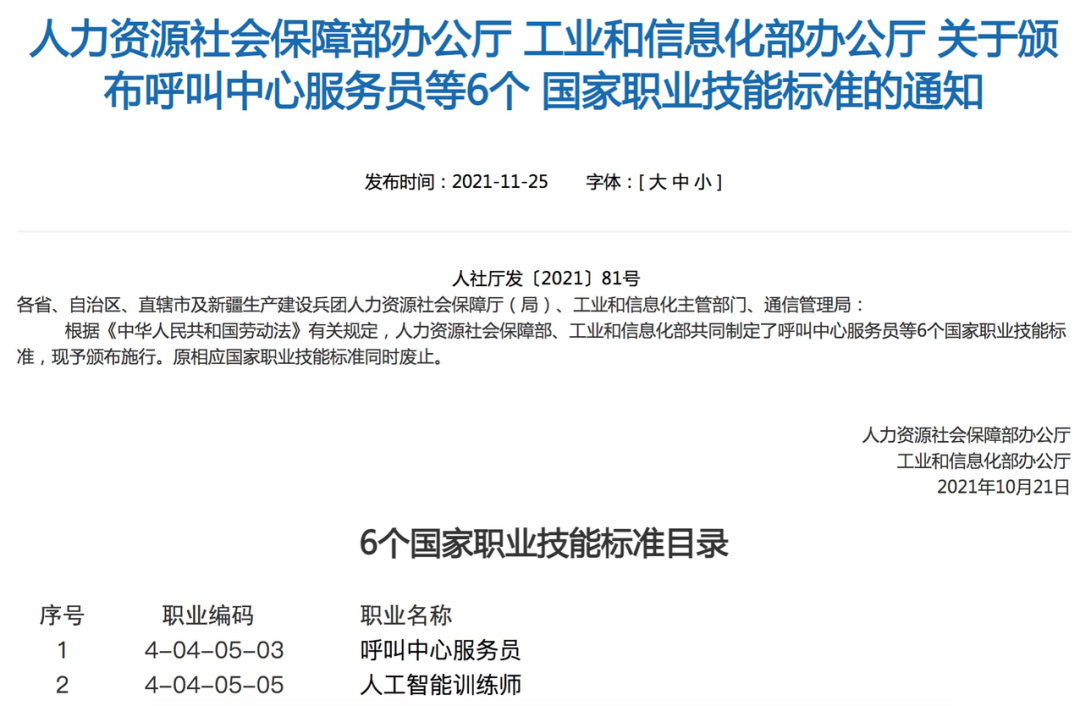 参考链接:http://www.mohrss.gov.cn/xxgk2020/fdzdgknr/rcrs_4225/jnrc/zyyjnpj/202111/t20211125_428717.html
