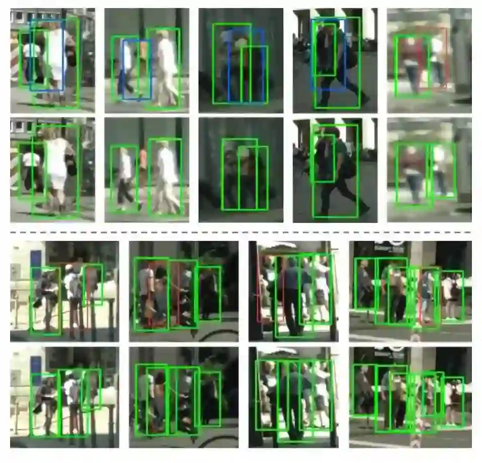 检测人群之中的行人依然是一个充满挑战性的问题,因为在现实场景中行人经常聚集成群,相互遮挡。一般而言,物体遮挡问题可以分为类内遮挡和类间遮挡两种情况。类间遮挡产生于扎堆的同类物体,也被称为密集遮挡(crowd occlusion)。在行人检测中,密集遮挡在所有遮挡问题中占比最大,严重影响着行人检测器的性能。