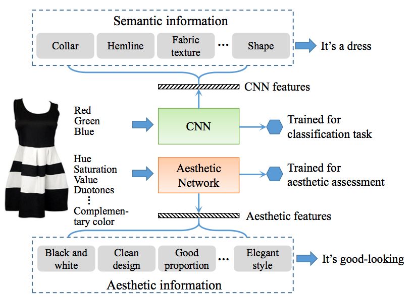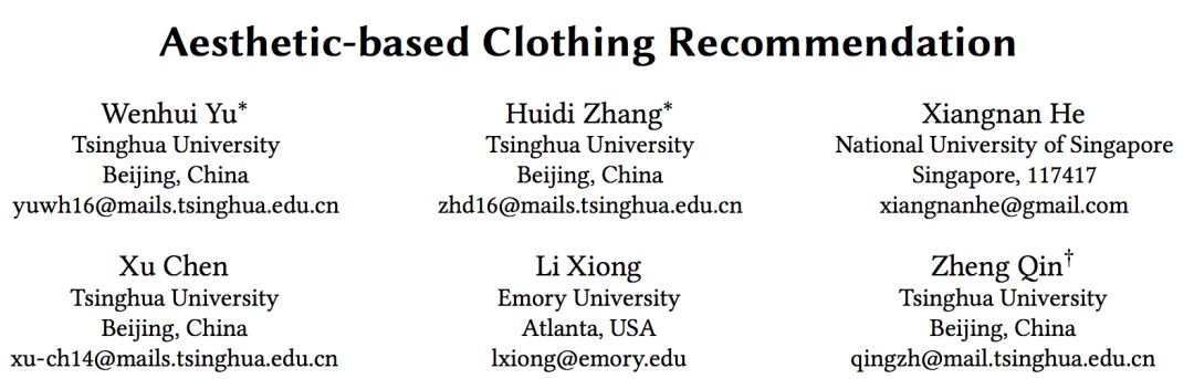 推荐理由:WWW2018最佳论文,从美感的角度考虑服装推荐的问题,把服装的属性主要划分为,美感和类别两个方面。模型简洁易懂,实验完备扎实。取得了很好的效果。