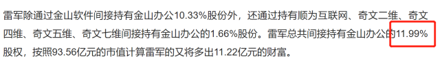 按照投资界在今年9月份的报道,雷军共持有金山办公
