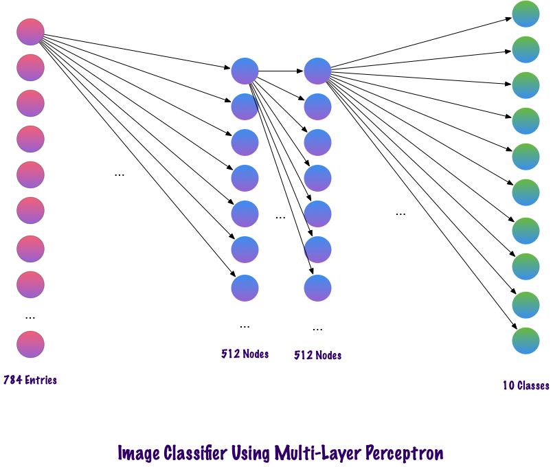 因为输入图像的大小为28x28=784(MNIST数据集),MLP的输入层神经元总数将为784。网络预测给定输入图像中的数字,输出数字范围是0-9。在输出层,一般返回的是类别分数,比如说给定输入是数字“3”的图像,那么在输出层中,相应的神经元“3”与其它神经元相比具有更高的类别分数。这里又会出现一个问题,模型需要包含多少个隐藏层,每层应该包含多少神经元?这些都是需要人为设置的,下面是一个构建MLP模型的例子: