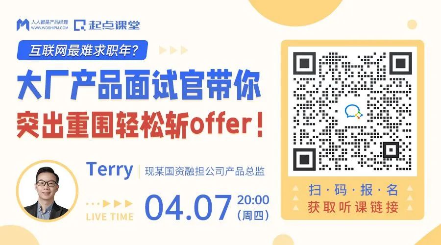 ⭕ 4月7日晚20:00-21:00,现国资融担公司产品总监@Terry,1小时直播解析【大厂求职全链路解析,三步教你轻松拿offer】,简历、作品集、高频面试题,带你逐一攻克!