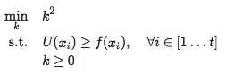 但是你可能会想:“等一下,我们不知道Lipschitz常数k的值!” 这不是大问题,因为它很容易估计,例如,在每次迭代之前将k设置为f(x)的最大观察斜率。这相当于解决下面这个简单的问题: