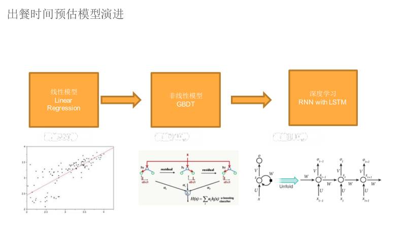 一开始效果不是特别好,但逐渐演进到后面的 GBDT ,在场景下做到平均不是特殊平均,加上出餐时间是 10 分钟,我们可以固定 7 分钟到 13 分钟,这个准确率比较高。