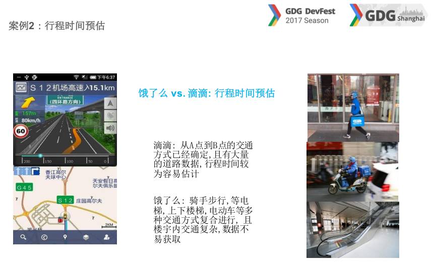 比如我们在滴滴场景下下了一个订单,说我想去浦东机场,它会告诉你这个车离这里两公里,3 分钟会到,这个3 分钟就是等待时间预估。
