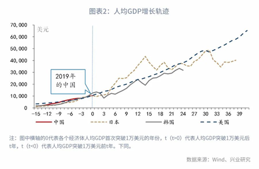 2019年中国人均GDP首次突破1万美元,这通常是个标志性的节点,随后将带来长期的国内商品经济繁荣。美国、日本、韩国人均GDP突破1万美元的时间分别是1978年、1981年和1994年,其国内大量本土品牌崛起,也就是在这段时间之后。