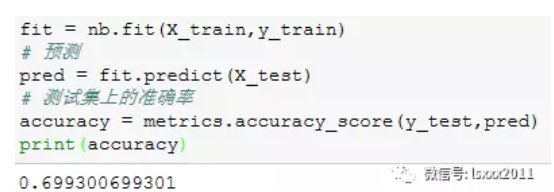 通过构建朴素贝叶斯模型,得到的样本测试集准确率约为70%。