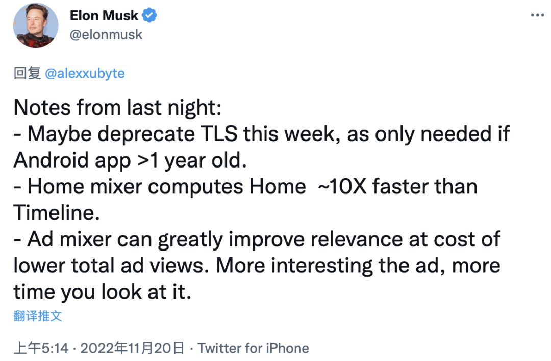 基于多轮会议,想必马斯克也对 Twitter 的整体架构也有了初步的了解。