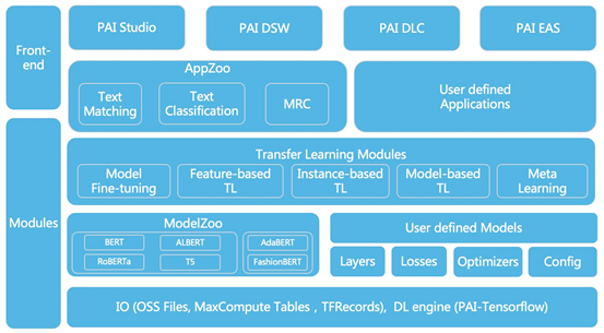 EasyTransfer框架全面兼容PAI-Tensorflow,用户通过简单的代码或配置文件修改,就可以使用PAI自研高效的分布式训练,编译优化等特性;同时框架完美兼容