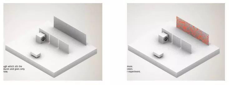 这就告诉我们,这些电子在出发和到达的时候表现得像粒子,但在穿越狭缝的时候却像波一样,它能够同时通过两个狭缝。电子在这个过程中既表现了粒子性,又表现了波动性。