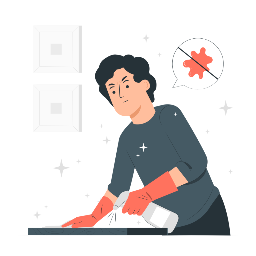 首先是清理。在日常清洁时,通常不会改变原本的家具摆放,清洁重点还是它们表面轻、小、易移动的其他物品,以及没有被家具覆盖着的地面。