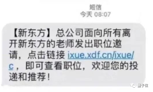一条新东方发给离职员工的短信在各个社交平台上火了。