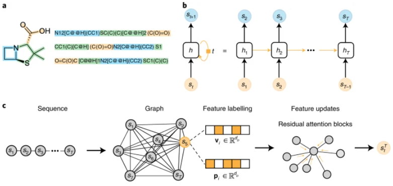SMILES 等分子串已被证明特别适合生成式深度学习任务,例如从头设计和 CASP。这一成功可能归功于这种化学语言的直接语法,它促进了下一个标记和序列到序列的预测。对于分子特性预测,SMILES 字符串可能由于其非单一性而受到限制。