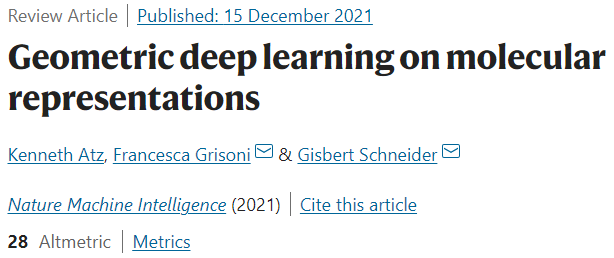 Nat. Mach. Intell. | 分子表征的几何深度学习