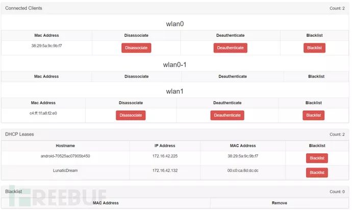 Kick按钮可以从Wi-Fi Pineapple网络中删除客户端