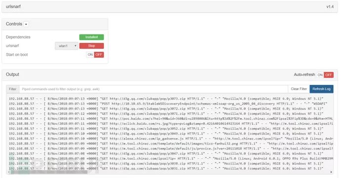 urlsnarf显示网络内http数据包,抓取到的url,显示也很直观
