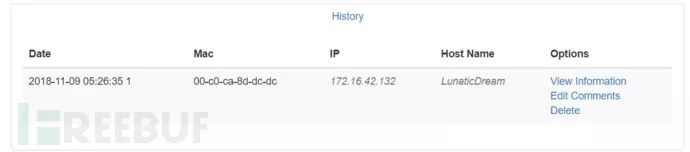 已连接的客户端将在“ Clients ”视图中列出它们各自的MAC地址,IP地址,它们已连接的 SSID (如果在PineAP中启用了Log Probes(日志探测) 功能)和主机名