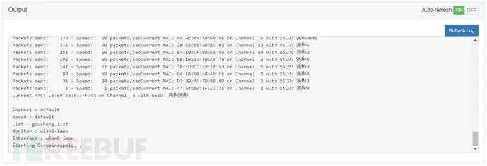 开始之后,SSID 池将会按照设定的时间间隔以及源地址、目标地址来广播beacon