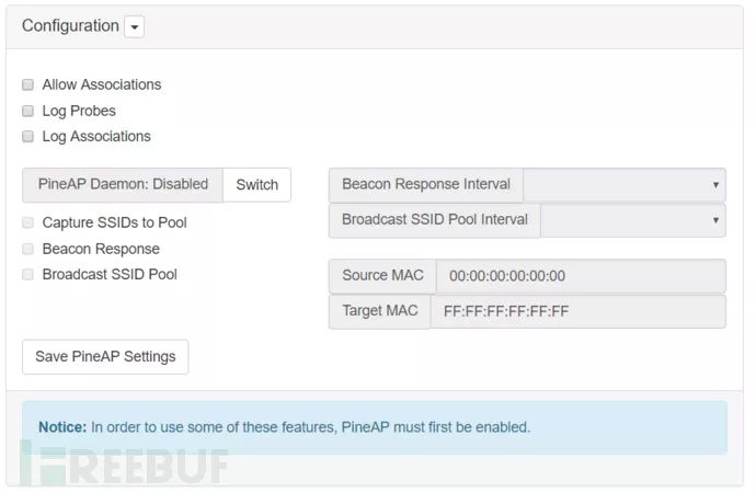 用于广播帧数据将会被附近的客户端识别,如果设置为某一个固定的 mac 地址,将会对该地址本身进行 PineAP唯一的攻击目标