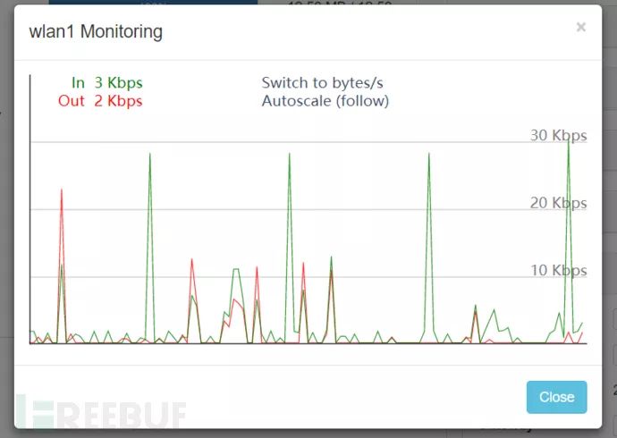 在网口处可以以图形实时显示一段时间内上下行流量状况
