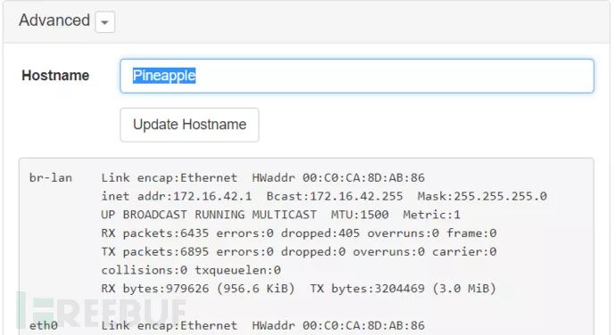 默认情况下,是Pineapple wlan0 的 Mac 地址,可以在 Networking 里进行设置