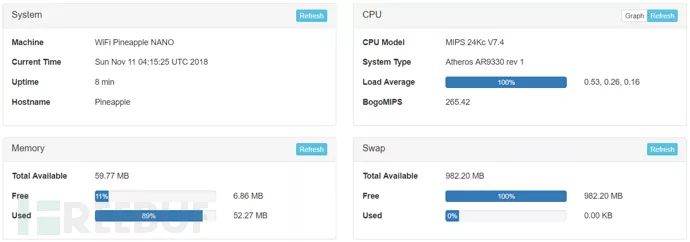 因此,对于手中这款 WI-FI Pineapple NANO,作为学习、研究、演示用,还是可以的,但如果作为实际环境攻击、大型网络嗅探等较为复杂的环境,鉴于计算能力或其他各方面的限制,可能表现的不是那么优秀