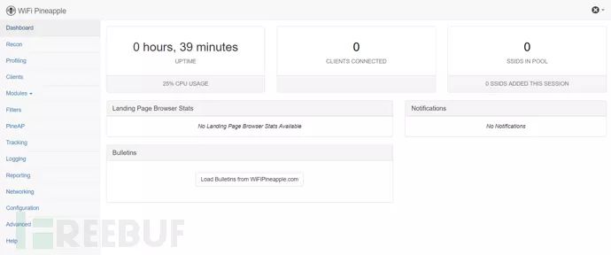如果想快速确定Pineapple是否连接网络,只需点击首页加载信息的按钮,如果能够获得官网信息,则已经联网