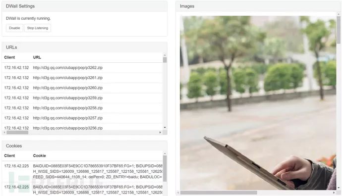 Dwall即是著名的“绵羊墙”,可以显示抓到的URL、cookie、图片用,用来做演示十分方便