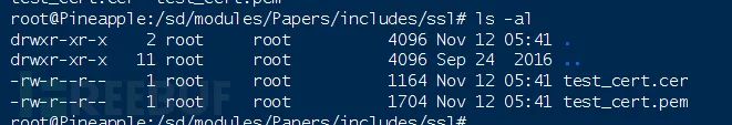 生成证书存放位置/pineapple/modules/Papers/includes/ssl/