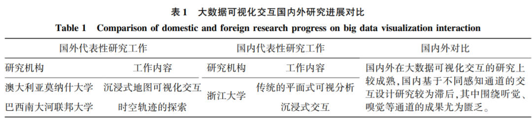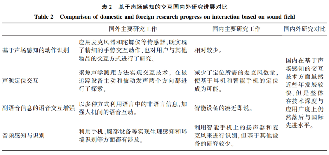 2)深入梳理了大数据可视化交互、基于声场感知的交互、混合现实实物交互、可穿戴交互和人机对话交互的研究进展以及国内外研究进展比较。