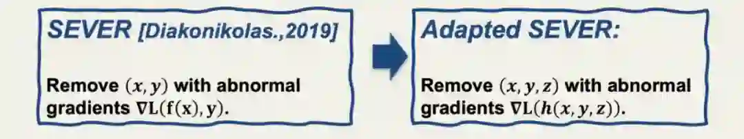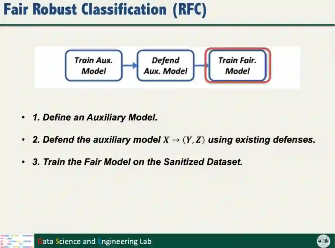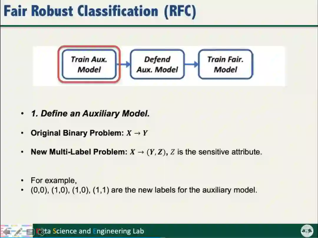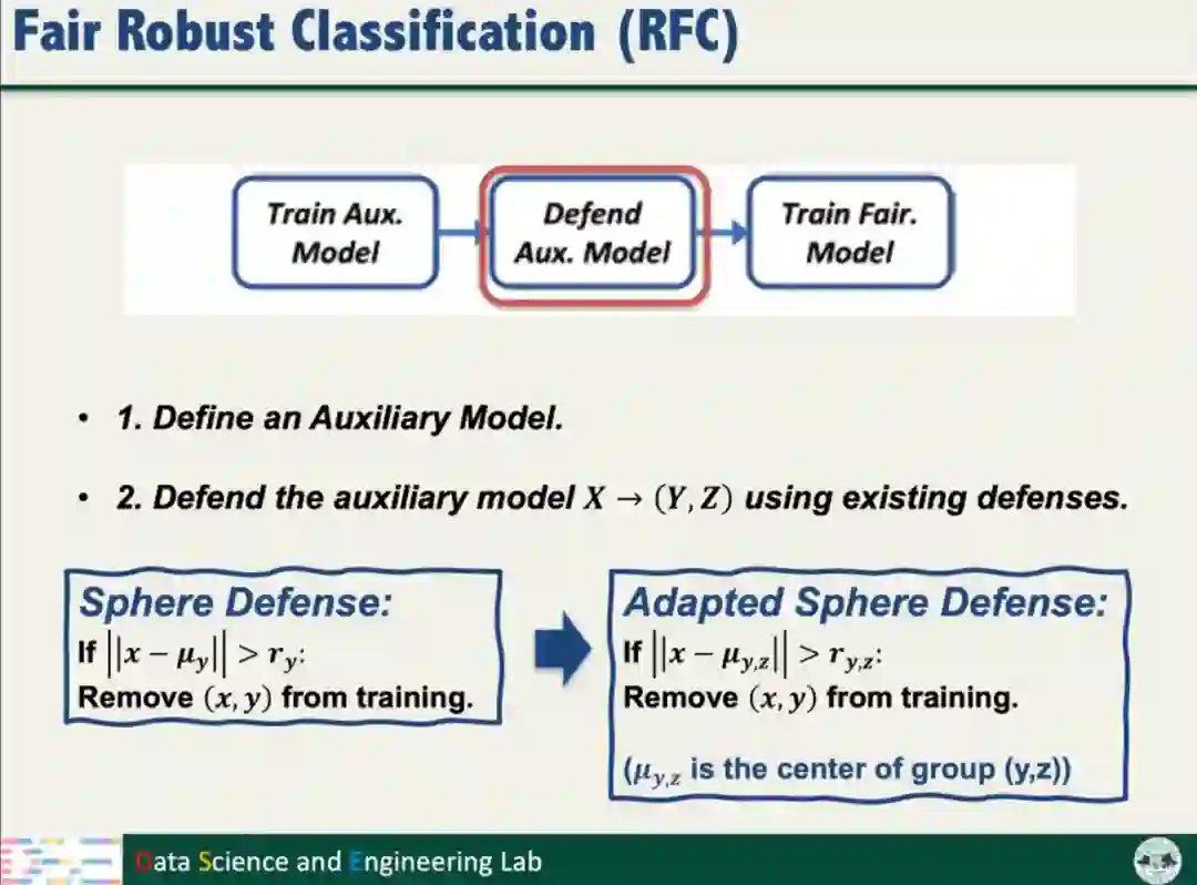 根据以上的分析结果,汤教授提出了公平鲁棒分类算法(Fair Robust Classification,简称RFC)。RFC将分类问题转化为多标签问题,通过训练额外模型,不仅考虑数据标签,还要考虑数据的Sensitive信息;对防御方法(如Sphere Defense和SEVER)进行适配改进。