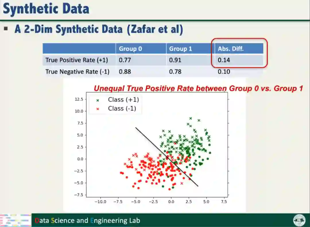 首先,为了评估公平性训练对鲁棒性的影响,汤教授在二维合成数据上开展了实验验证,该合成数据存在不公平问题。