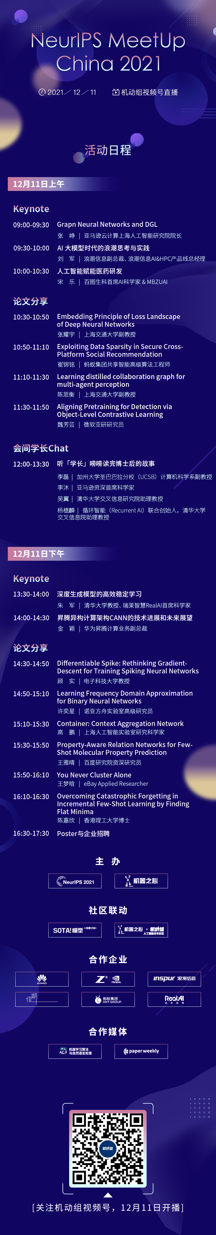 此次活动包涵5个Keynote、10篇论文分享、HOT SOTA圆桌、多篇Poster线上交流与多场企业招聘环节,按照惯例还有抽奖。