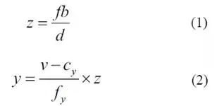 基于所获得的视差图,可以通过等式(1)和(2)获得对应于图像坐标系中的P'(u,v)像素的世界坐标系中的P(x,y,z)点,