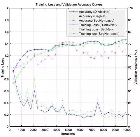 我们将我们的系统应用于最近的城市场景理解数据——城市风景,其中包含5000幅精细和20000幅粗注释图像。此外,数据集提供由立体相机捕获的左视图和右视图,从而提供获得视差图和深度图的机会。在这篇论文中,选择了5000幅经过精细注释的图像,并将其分成训练、验证和测试集。这些集合分别包含2,975,500和1,525幅图像。图像大小被转换为200×400,以缩短训练时间并减少内存消耗。为了标记重要的交通信息,交通场景分为11种类别包括道路、道路边界、建筑物、电线杆、交通标志、树木、草坪、天空、人、汽车、自行车或摩托车,全局准确率和网络转发时间都被用于评估。
