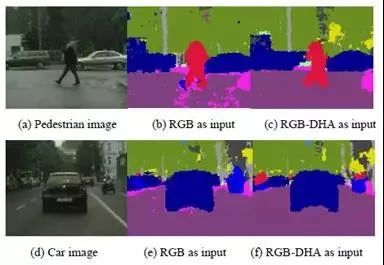 6通道RGB-DHA地图可以在语义分割中获得比仅使用RGB图像作为输入更好的结果,尤其是用于识别交通场景中的道路目标,例如行人和汽车。